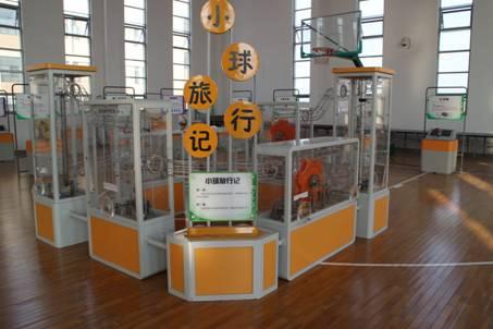 观众通过动手操作各种类型的机械装置,将滚球提升到不同高度或改变滚动方向,使滚球的势能逐渐增加。主要展示的是动能与势能的相互转换。
